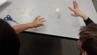 - lots and lots of masking tape, empty toothpaste/cereal boxes, plasticine, tinfoil, tissue paper, popsicle sticks, cardboard pieces, string, newspaper, stir sticks, small pieces of wood, paper towel rolls, etc...